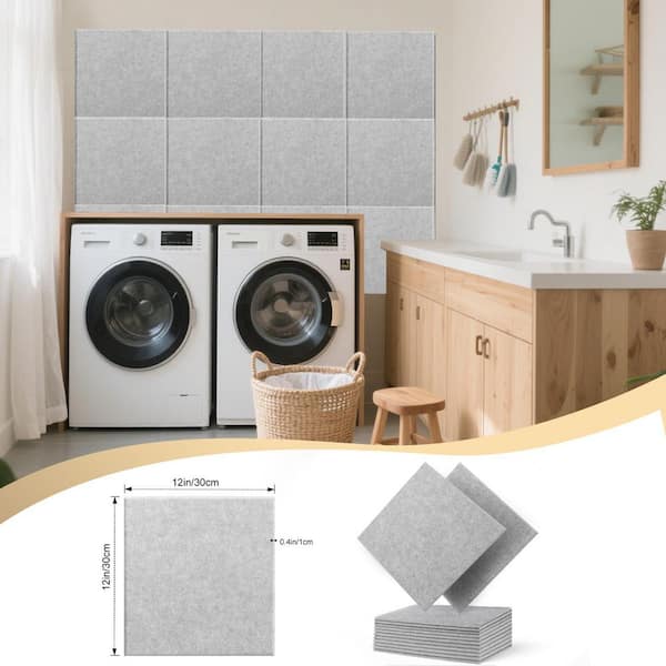 12 in. x 12 in. Grey Acoustic Wall Panels, Soundproofing Panels with Self-Adhesive Backing for Noise Reduction (12-Pack)